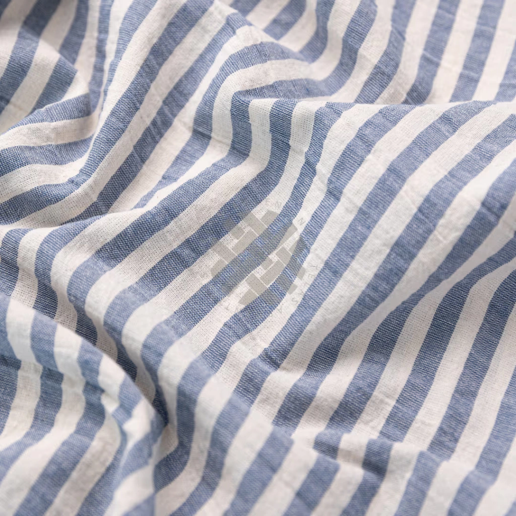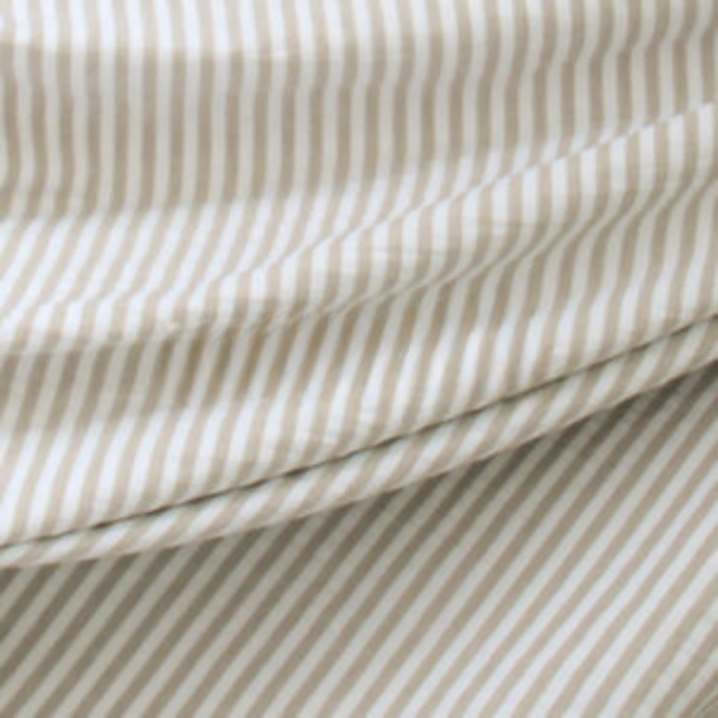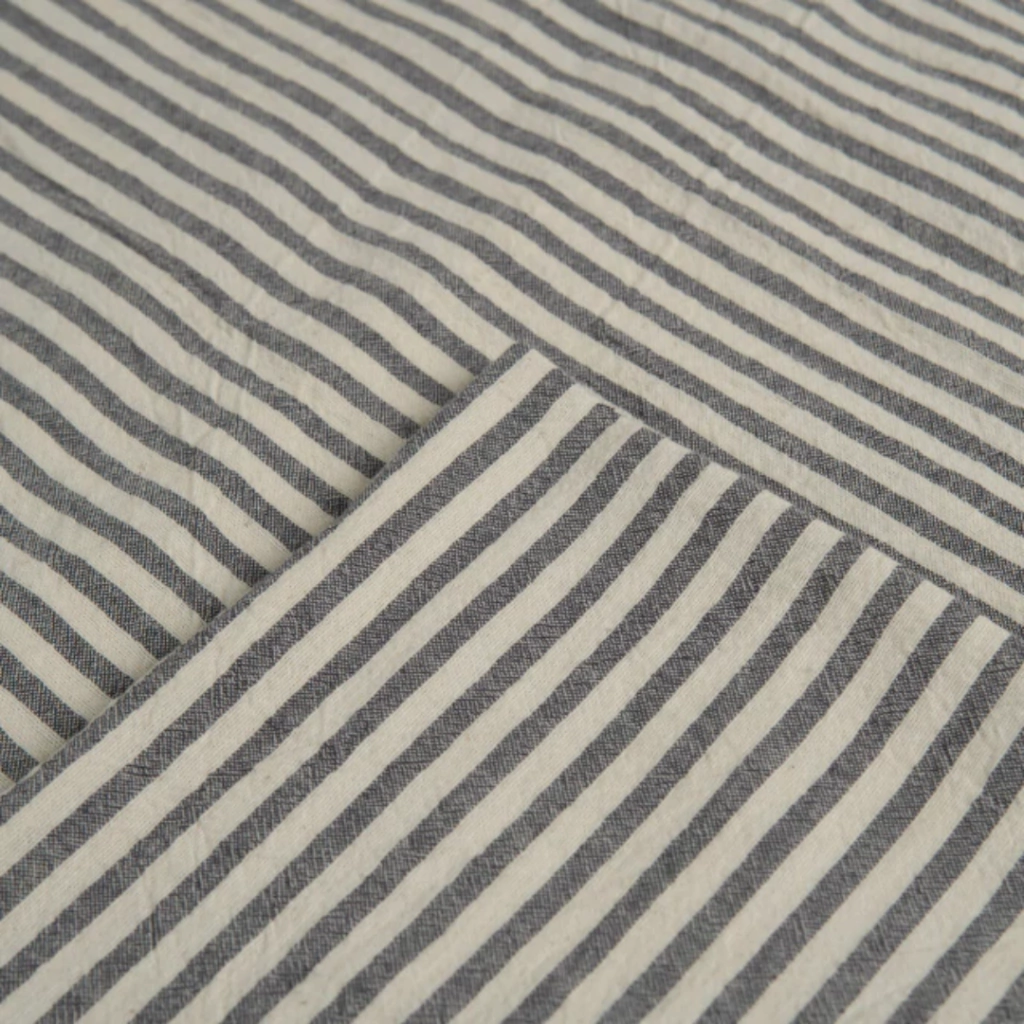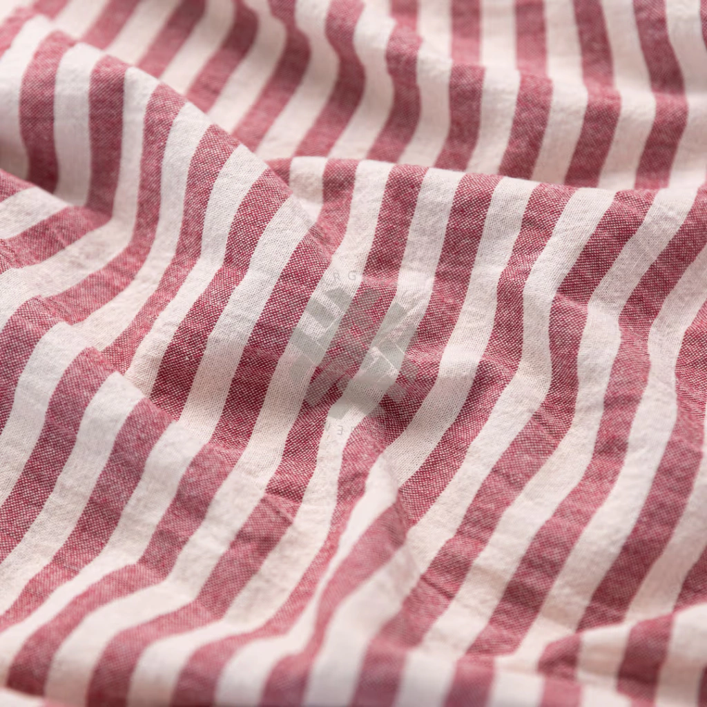 Realizadas en tusor liviano de algodón con diseño a rayas, un género arrugado con un acabado rústico y descontracturado. solapada en la parte de atrás y terminacion con pestaña. El relleno es de vellón siliconado hipoalergénico.